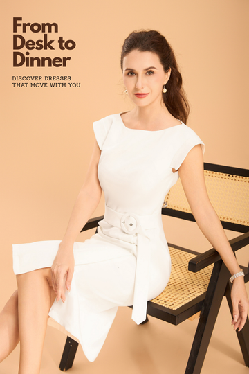 For the woman who leads with clarity. The Alba Structured Sheath Dress is crisp, calm,...