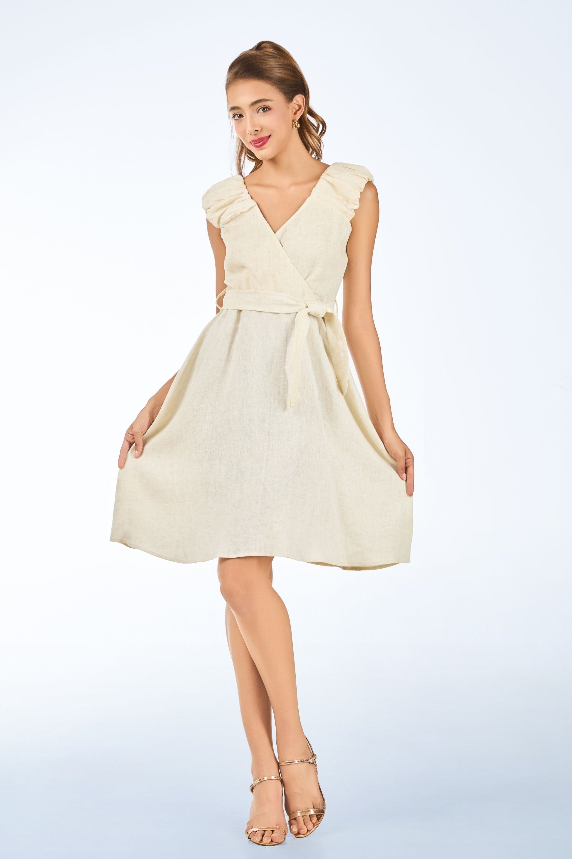 💛 Want this design in separates instead? Explore the Alina Pure Linen Wrap Gather Top and Pants Set.