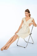 With Alina, I wanted to elevate linen with sculpted details gathered shoulders and a bodice that flatters like a wrap, without the fuss. The belt lets you play with silhouette, making it as versatile as it is pure.