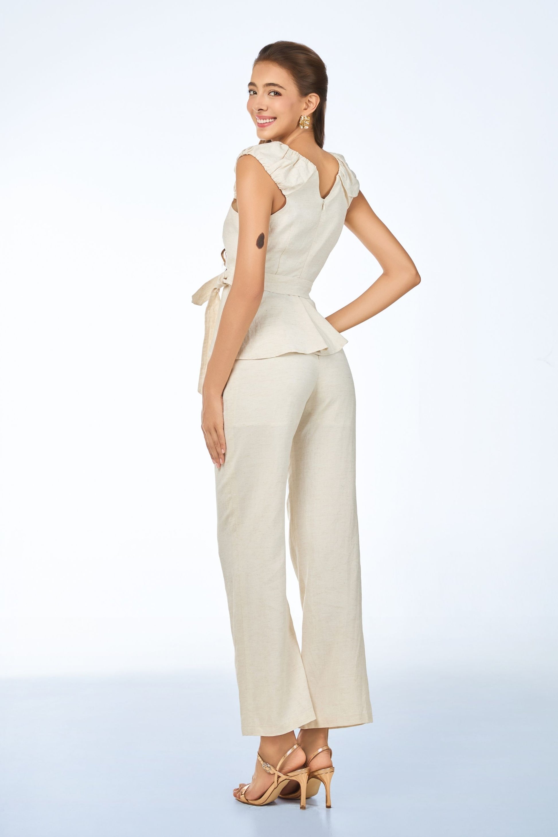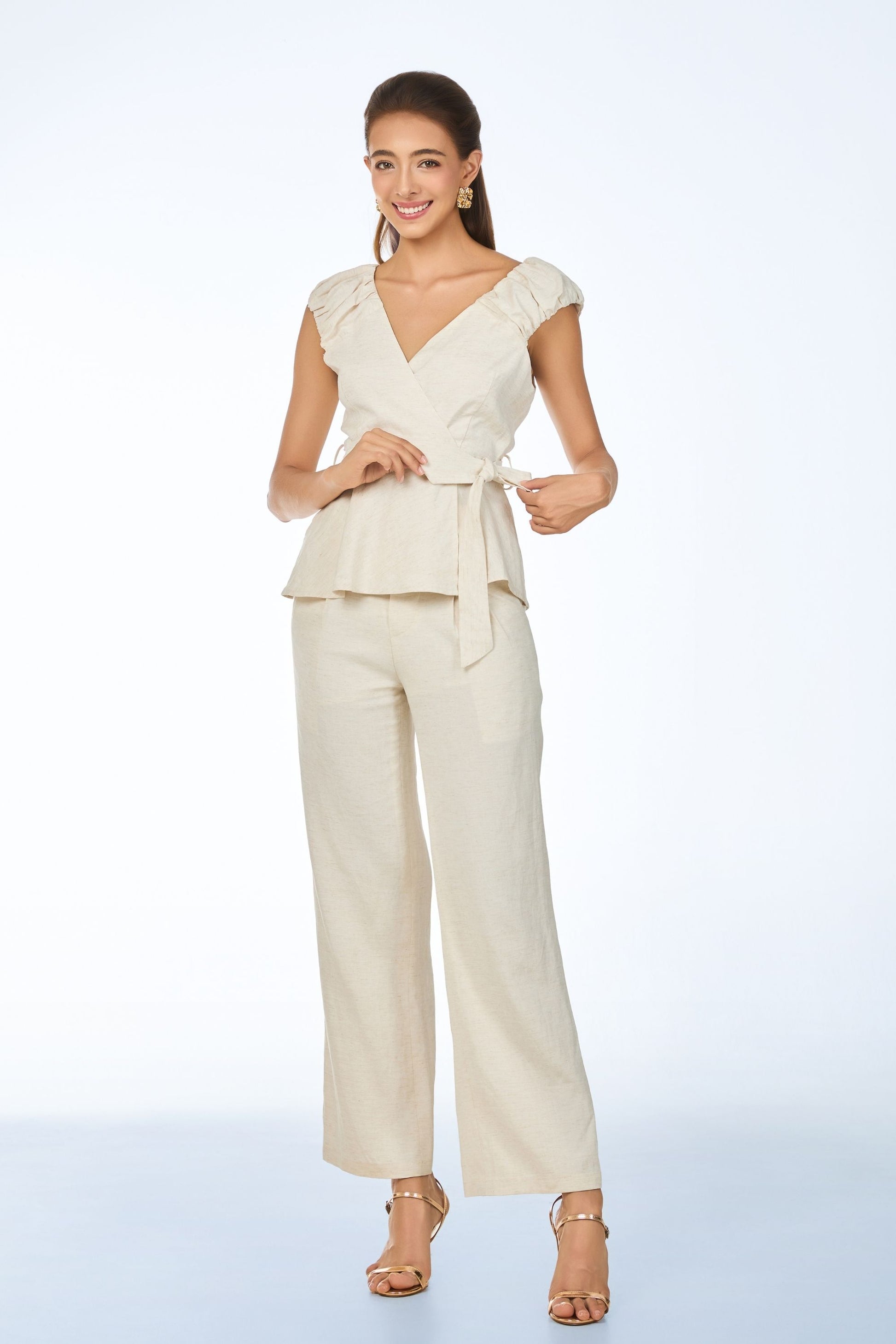 Alina Pure Linen Wrap Gather Top and Pants Set