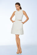 The Aria Skirt is crafted from 100% washed cotton, featuring an A-line silhouette that flatters and two functional pockets that add ease. A discreet Vanda button closure at the waist and pretty details at hem complete the elegant design.