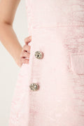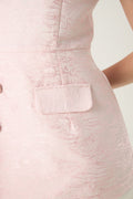 The Blush Authority Tafetta Dress balances softness and structure in a way that feels effortless. The pale blush tone feels gentle, almost quiet, yet the silhouette holds its ground.