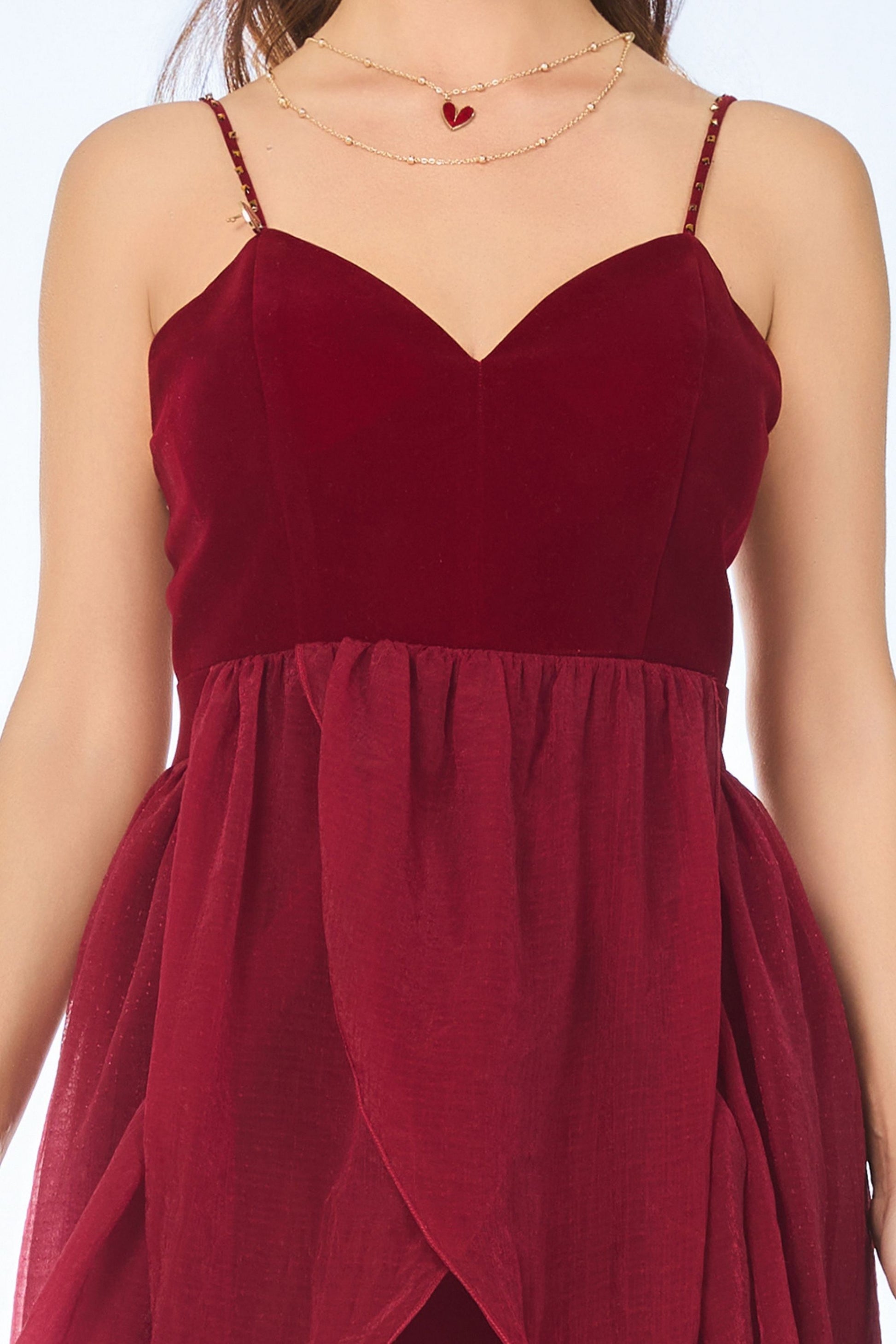 This dress was designed to move like a heartbeat - quiet, strong, and alive. The velvet holds confidence, while the chiffon adds soul.