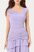 The layered draping smooths the tummy, lifts the silhouette, and flows into a fluted hem that moves like a breeze. Fully lined in the same luxe fabric for maximum comfort, Lavande is that rare dress that feels sculpted, not squeezed.