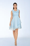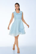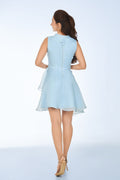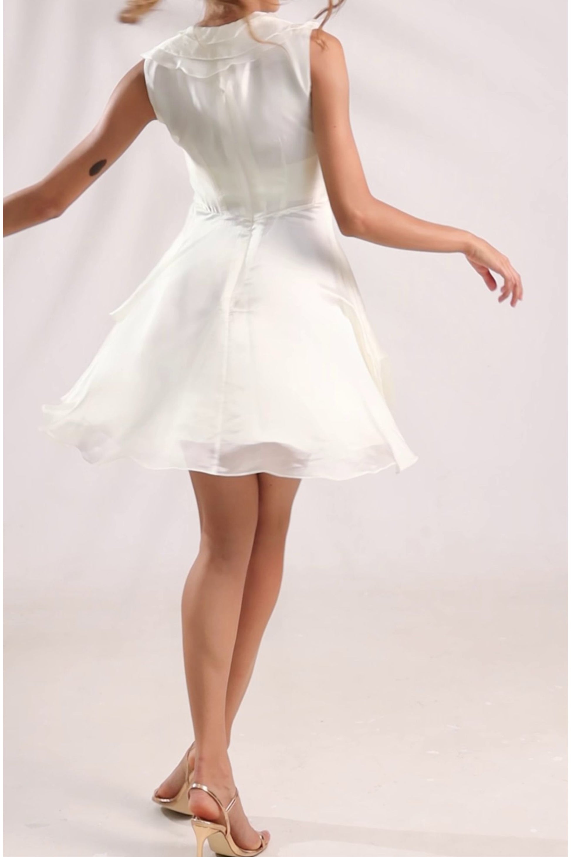 The layered ruffle neckline frames the face with feminine softness, while the flowy petal-like A-line silhouette creates effortless movement with every step. The chiffon layers add lightness and grace, making it a versatile dress that adapts from day to evening.