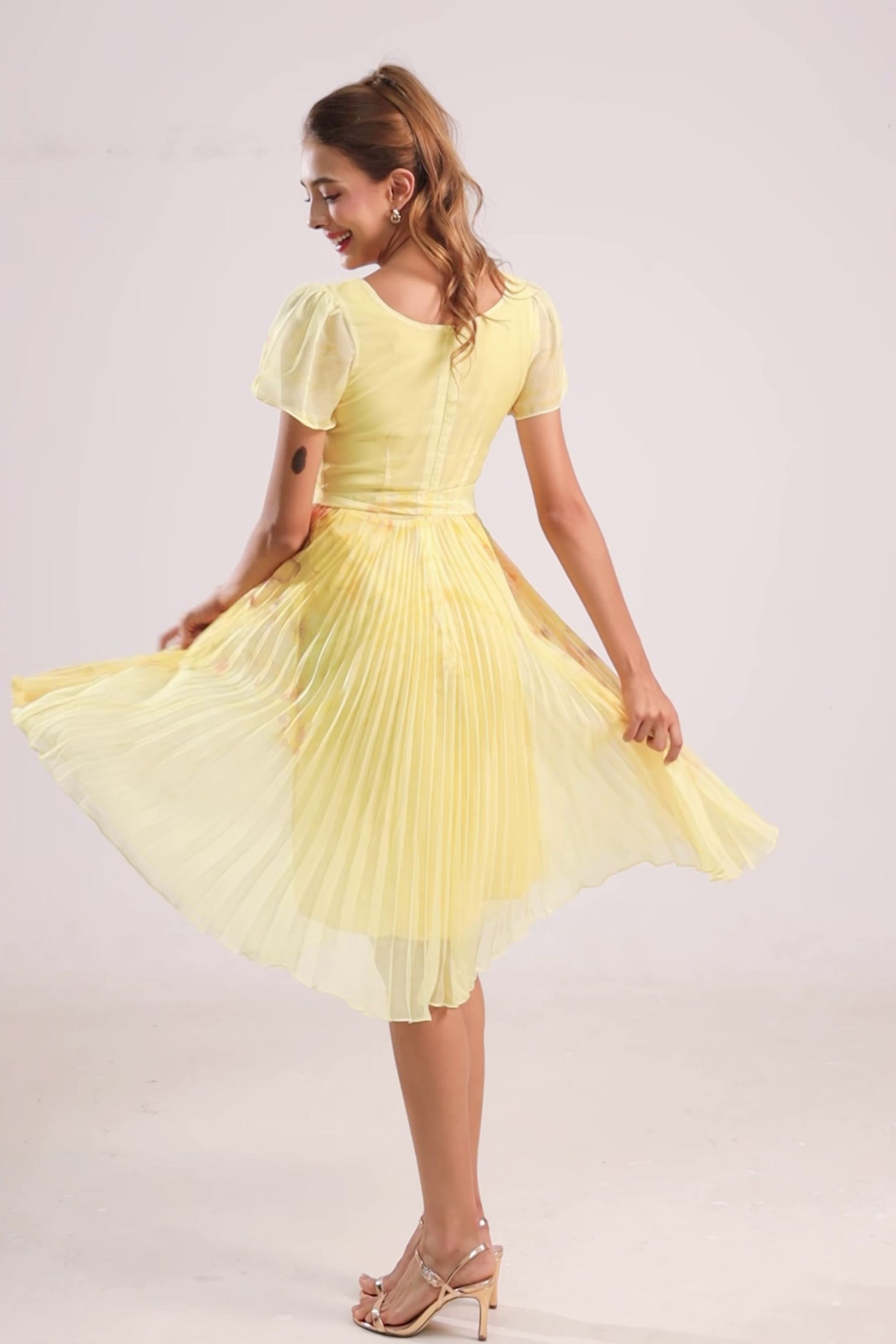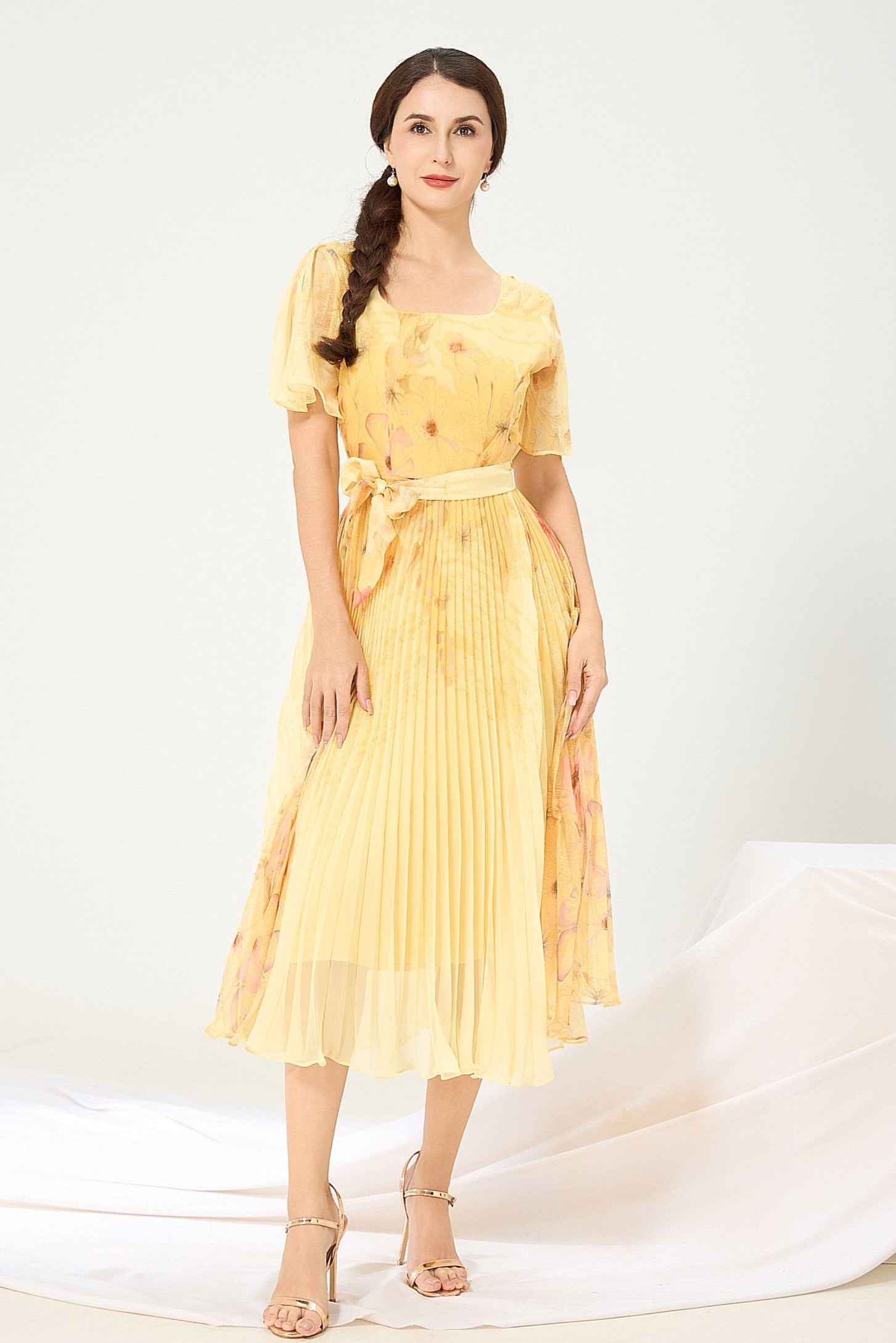 This Marigold Midi Dress is stunning! The chiffon fabric feels luxurious, and the pleats add such an elegant touch. Perfect for a wedding or special event!