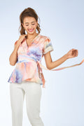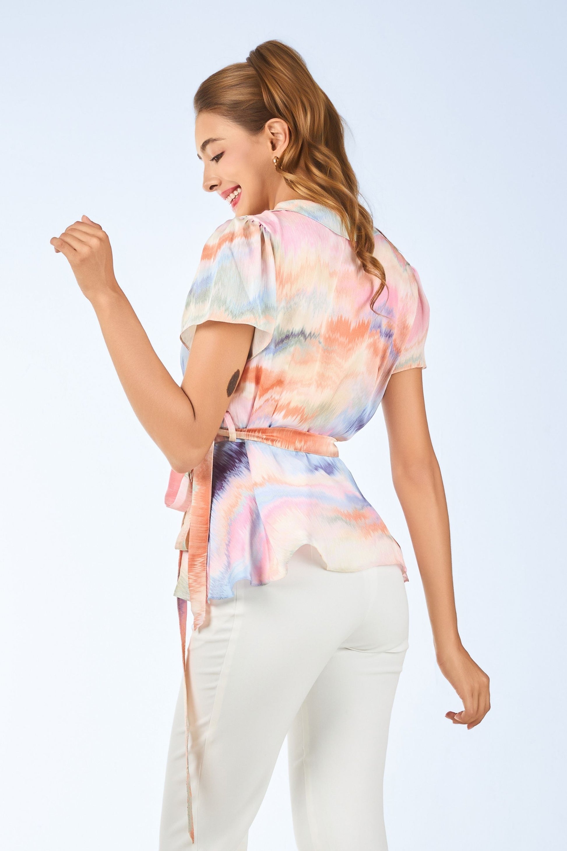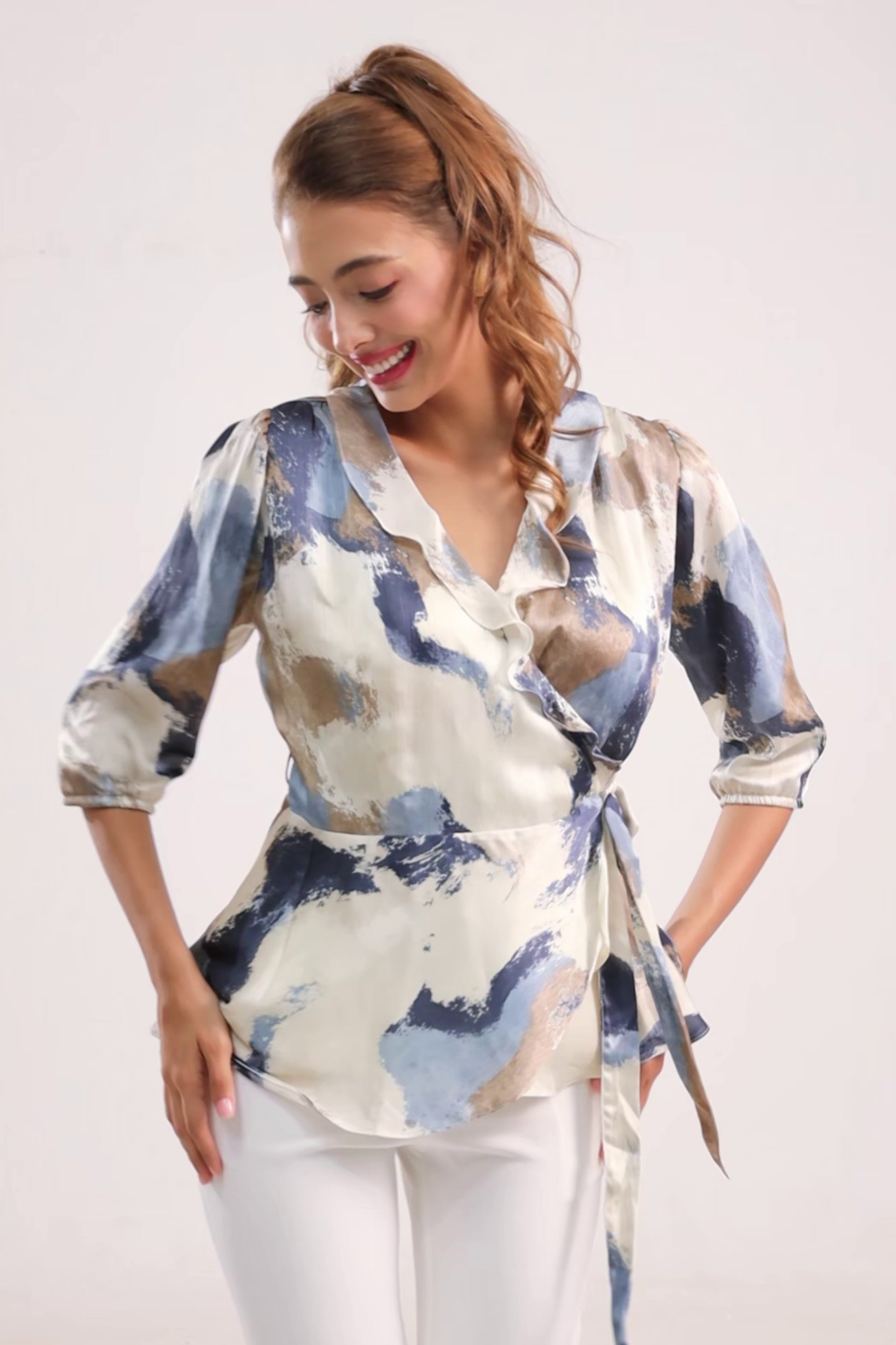 Cut: Wrap blouse with adjustable side tie for flexibility.