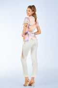- Pink Watercolor: Pair with Vanda's white pants, white or blue leggings, or jeans.