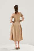The premium denim fabric moves softly as you walk, grounded by a cotton lining that keeps the dress comfortable, breathable, and effortless to wear - even for long evenings.