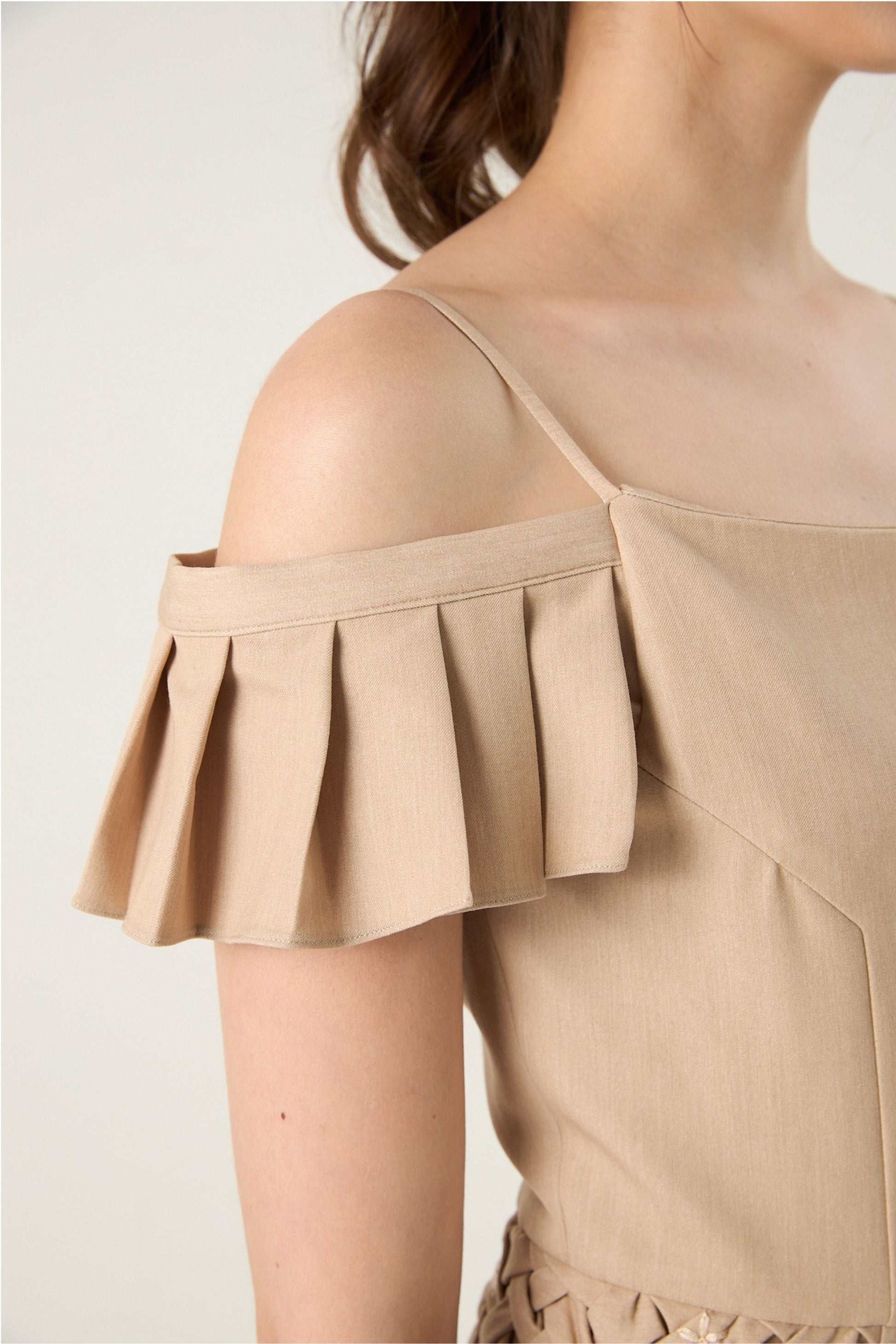 At first glance, the silhouette feels calm and ladylike.