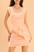 Delicate in color, bold in form. The Peach Drape Sculpted Mini Dress balances softness and structure - sculpting your shape with a draped sweetheart bodice, gently pleated waist, and asymmetrical fold at the hip that adds movement without losing refinement. The result? A mini dress that feels romantic but sharp, playful yet poised.
