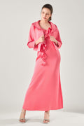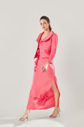 The Rosé Sculpted Blazer is made from premium polysilk, luxuriously smooth and cool against the skin. Fully lined using the same fabric, it drapes cleanly while holding a confident structure that frames your body beautifully.