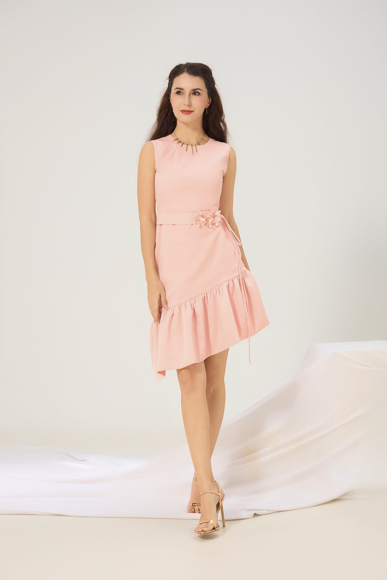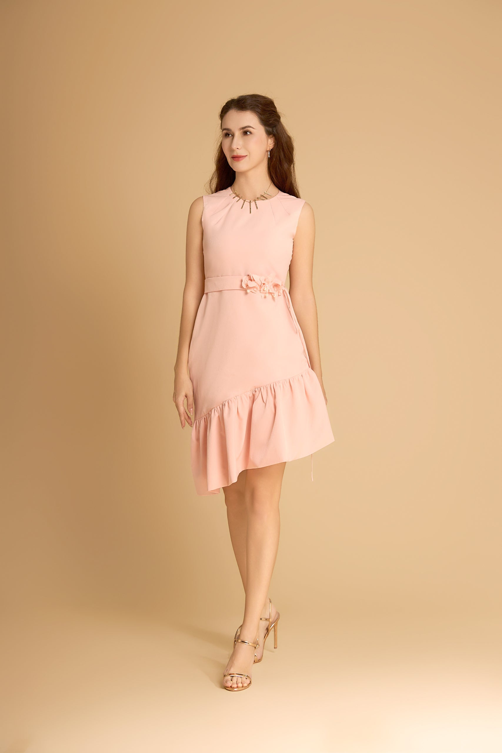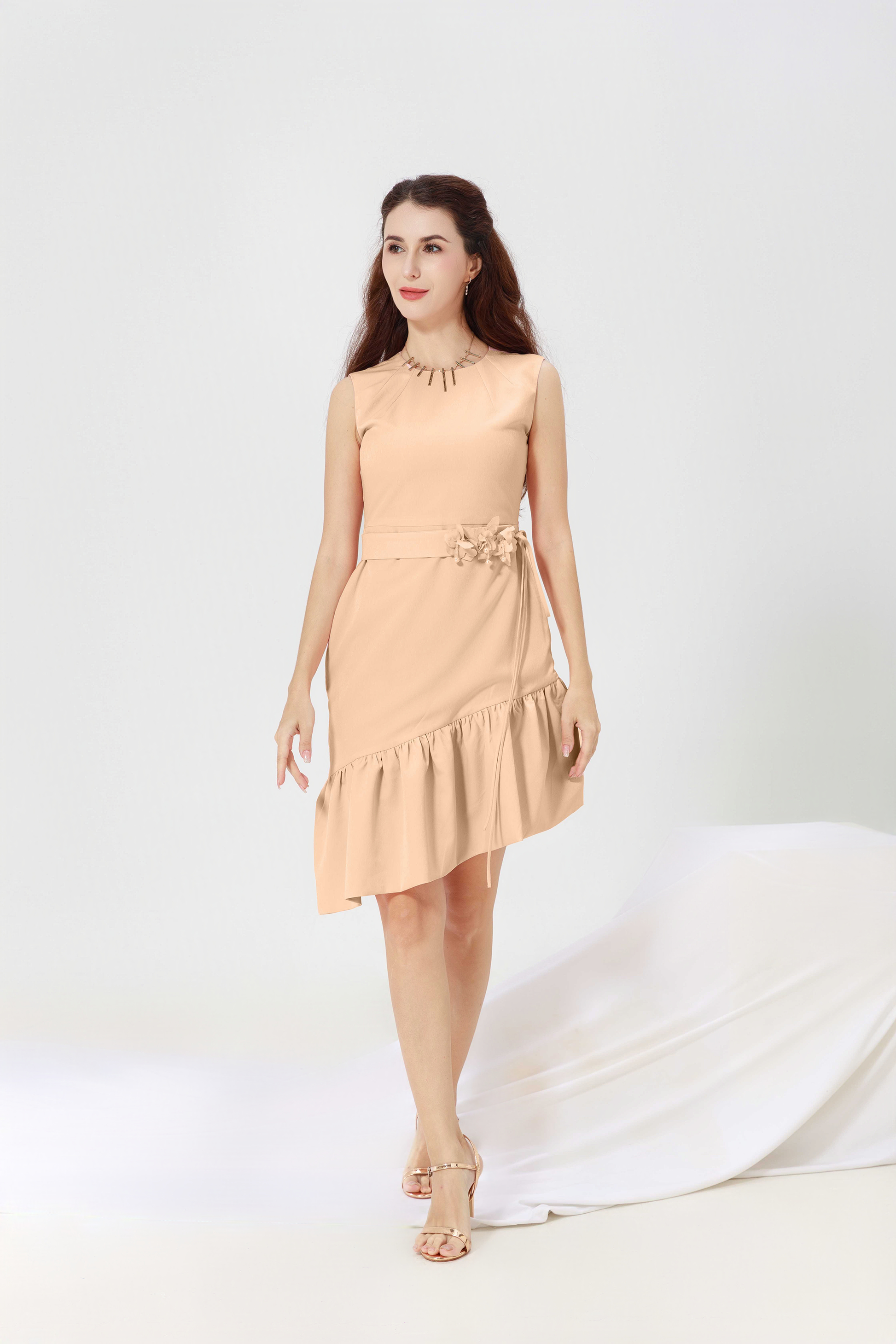 Length: Midi with asymmetrical ruffle hem