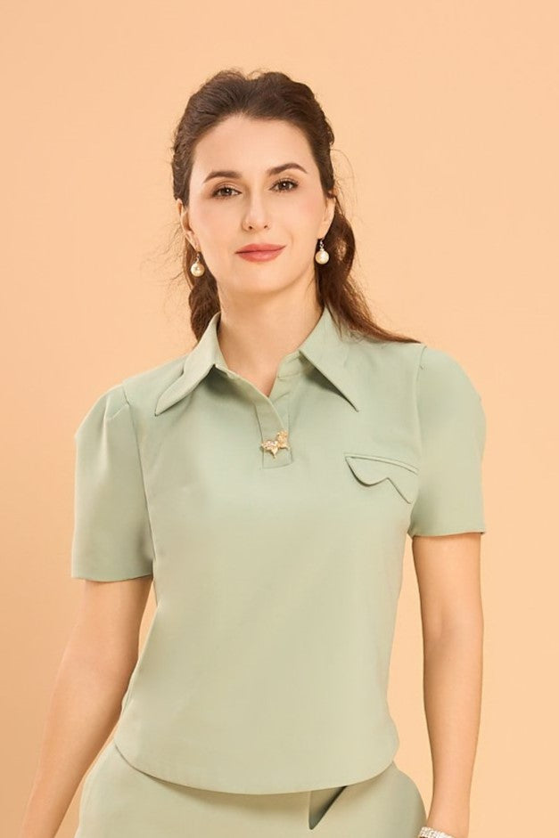 A shirt that understands the art of quiet confidence. The Wonder Shirt from VANDAMOD is your graceful daily essential - elevated with the Signature Vanda Bloom motif at the collar and chest pocket. Designed to feel polished yet easy, this short-sleeved blouse is fully lined in our soft signature fabric and finished with a hidden side zip for a clean, flattering silhouette.